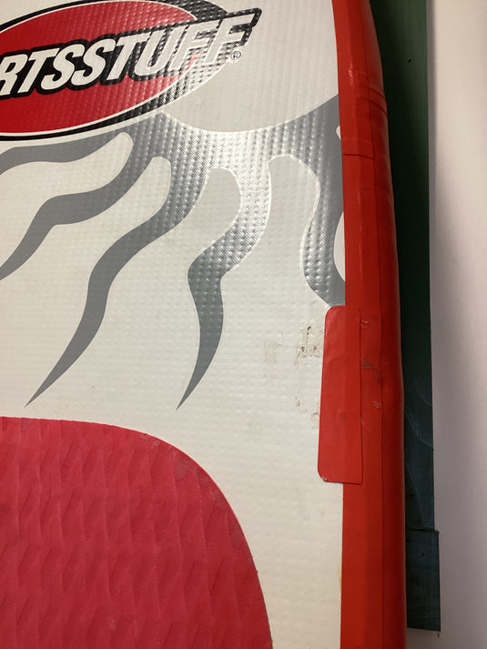 The first step is to see the board. Don't hesitate to bring it to the shop and speak with our team. Our team is knowledgable and can handle most repairs. We fix whitewater rafts and rescue boats of all shapes and sizes for many Swift Water Rescue Teams throughout New England. We can handle yours, too!