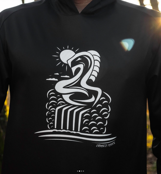 Inspired by the Nyami Nyami lore, although connected to the Zambezi, still resonates with people all over the world no matter what rivers they are on. The Zambezi Elite Sun Hoodie will be your perfect summer wear on and off the water. More uses, and more sizes than ever. Whether for your daily wear, or a summer joy lap, you’ll keep coming back to this shirt!